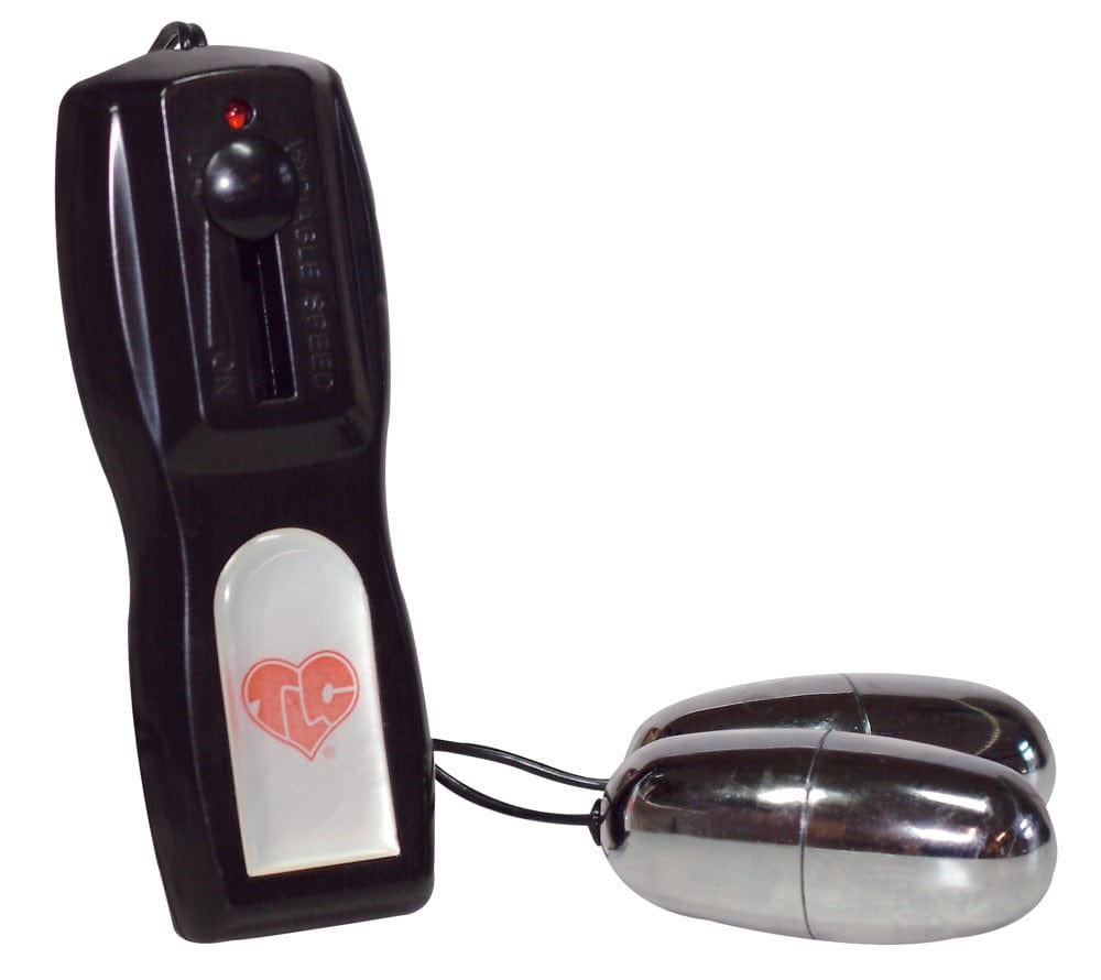 Beiliegende Vibro-Eier: jeweils 5 cm lang, Ø 2,5 cm, Vibrationen mit kabelgebundener Fernbedienung bequem stufenlos steuerbar.