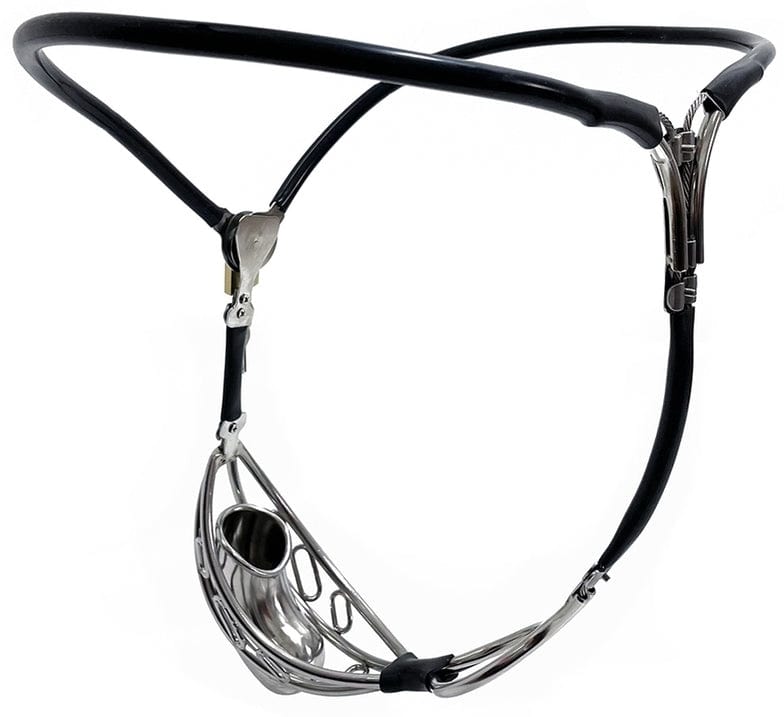 Dieser originelle Keuschheitskäfig sorgt für eine vollkommen neue Erfahrung der Enthaltsamkeit. Er ermöglicht es, den Penis diskret einzuschließen und unsichtbar zu machen, während das Metall-Gummi-Geschirr den Käfig sicher am Körper fixiert. Ideal für alle, die Kontrolle und Stil miteinander verbinden möchten.